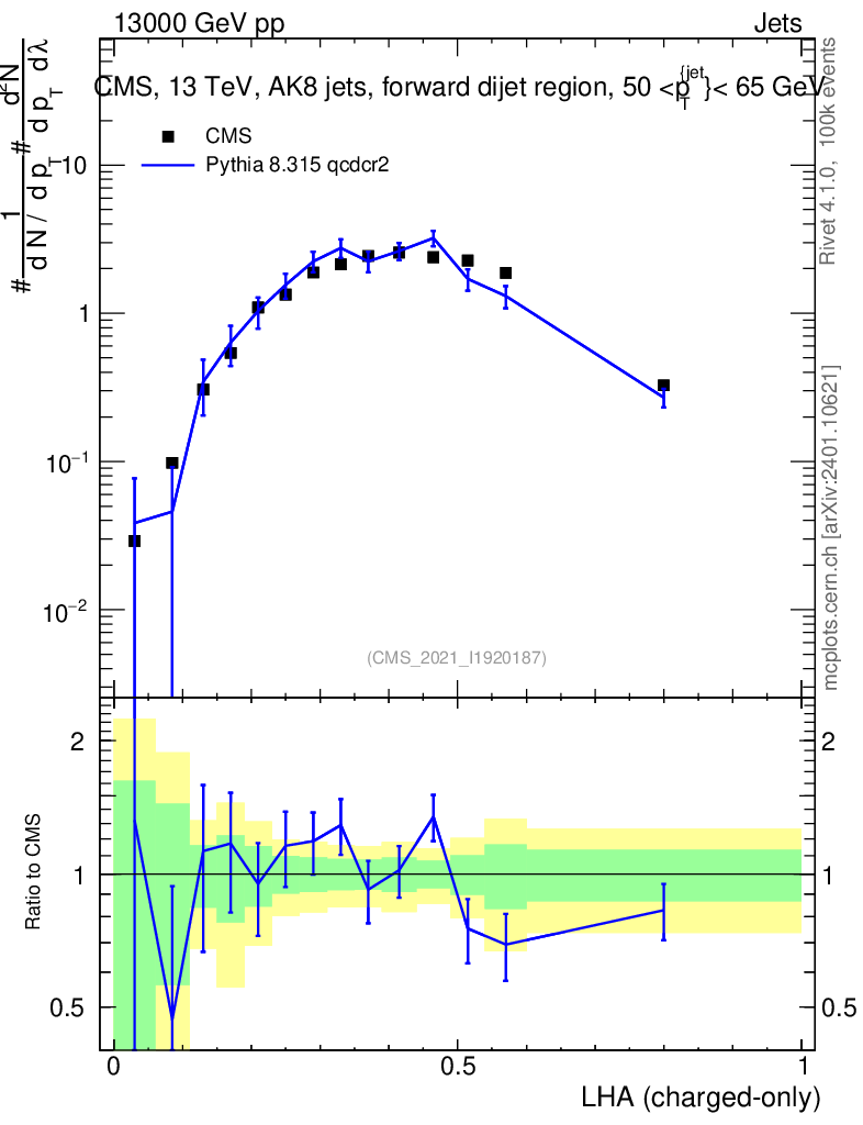 Lines: data, pythia8 8.315 qcdcr2 |