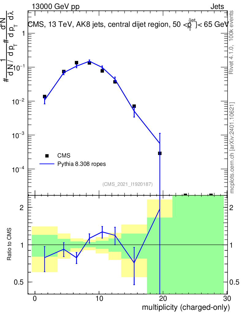 Lines: data, pythia8 8.308 ropes |