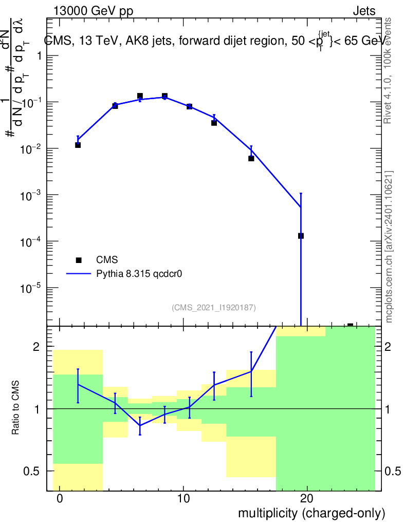 Lines: data, pythia8 8.315 qcdcr0 |