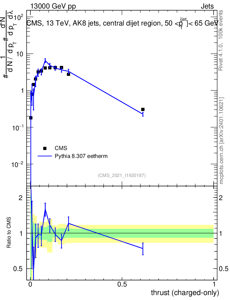Lines: data, pythia8 8.307 eetherm |