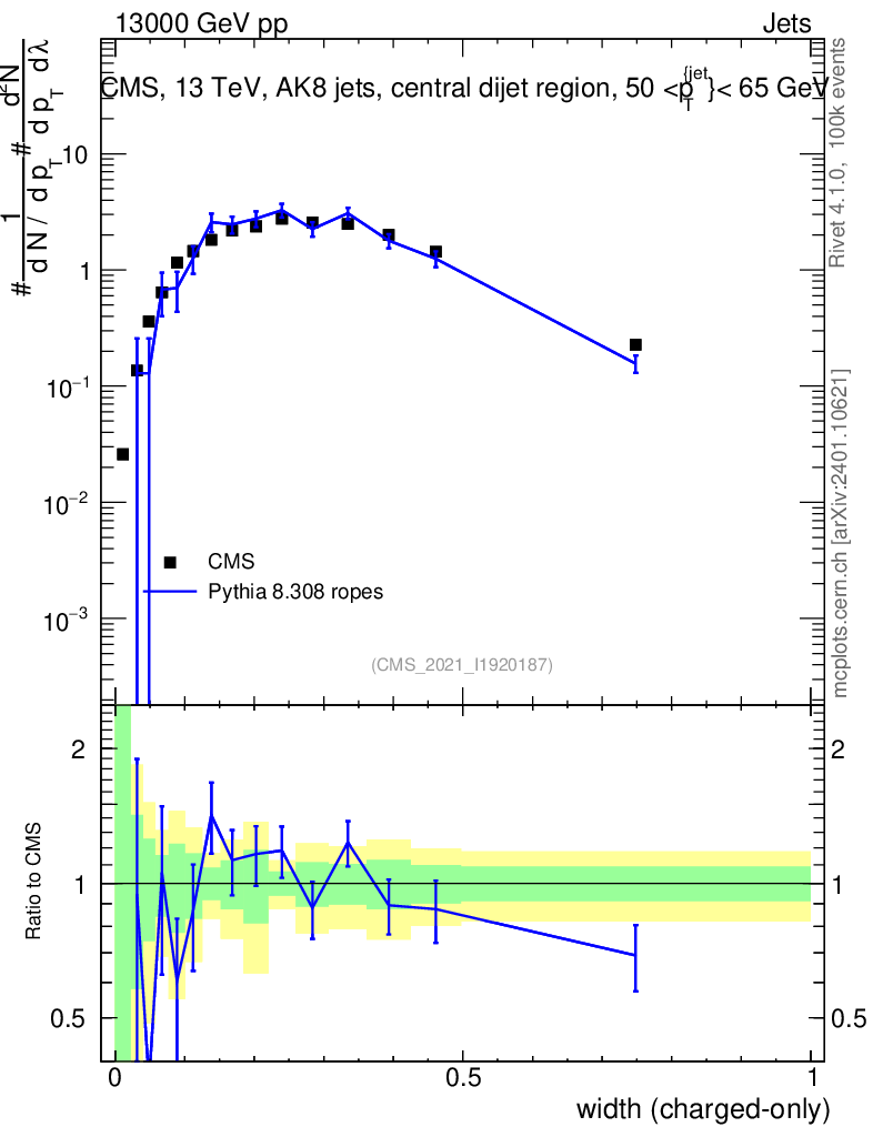 Lines: data, pythia8 8.308 ropes |