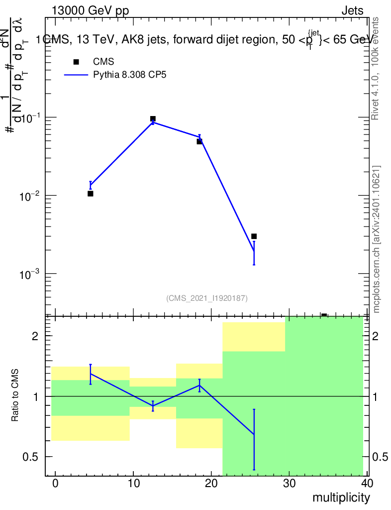 Lines: data, pythia8 8.308 CP5 |