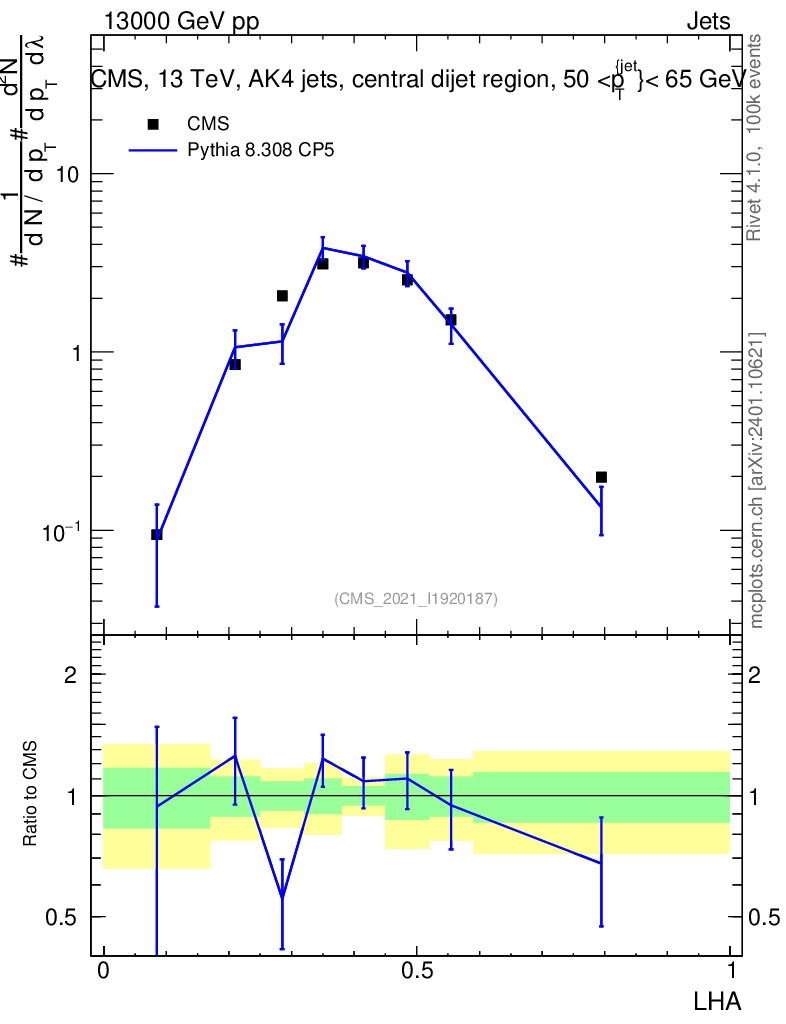 Lines: data, pythia8 8.308 CP5 |