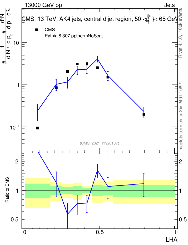 Lines: data, pythia8 8.307 ppthermNoScat |