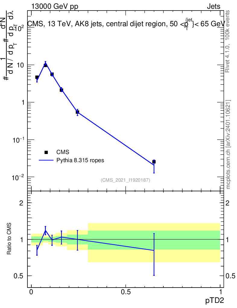 Lines: data, pythia8 8.315 ropes |