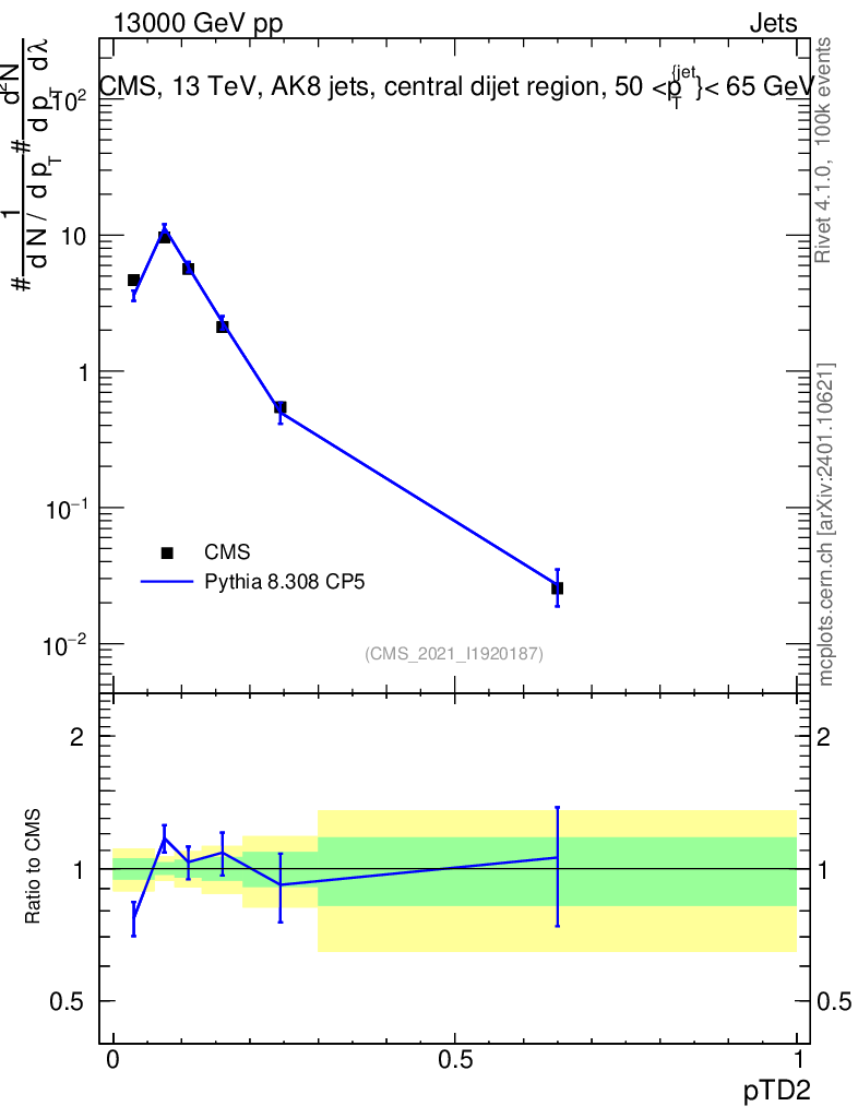 Lines: data, pythia8 8.308 CP5 |