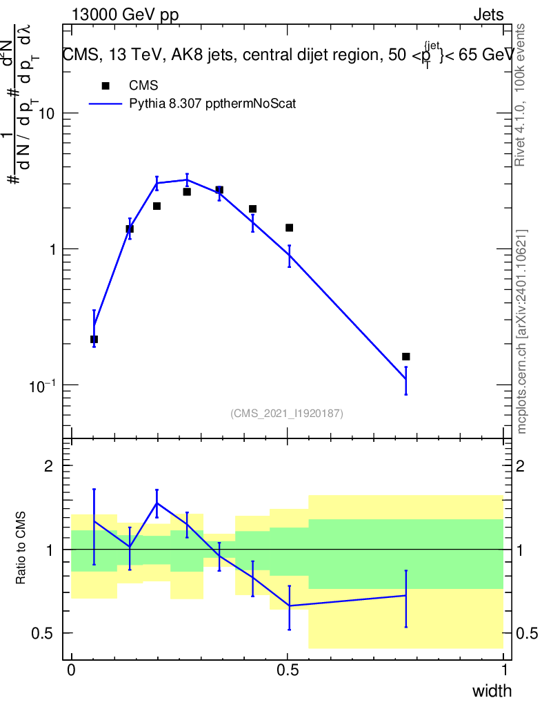 Lines: data, pythia8 8.307 ppthermNoScat |