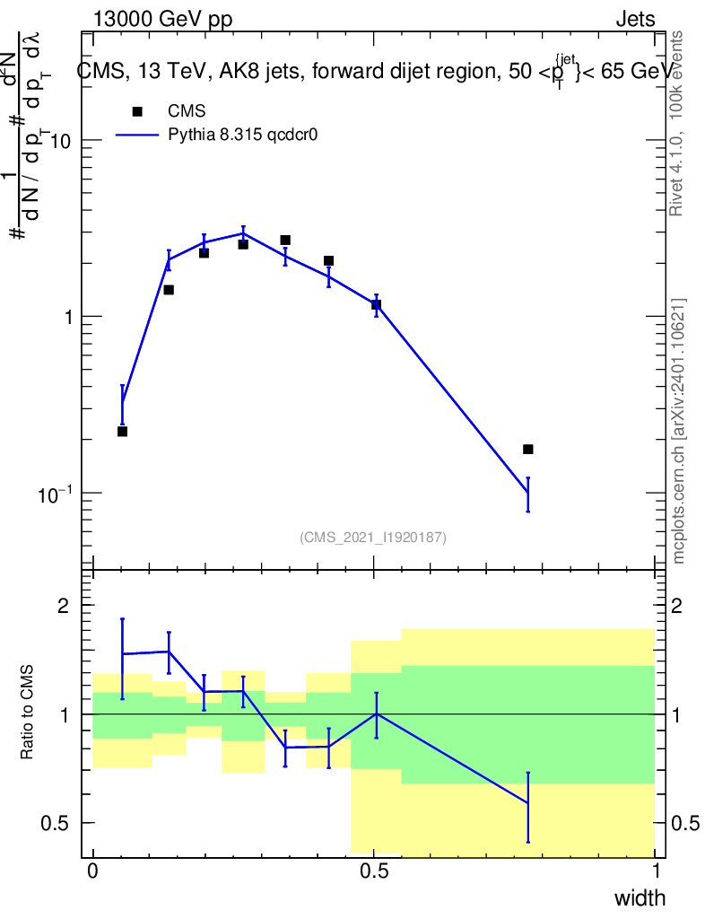 Lines: data, pythia8 8.315 qcdcr0 |