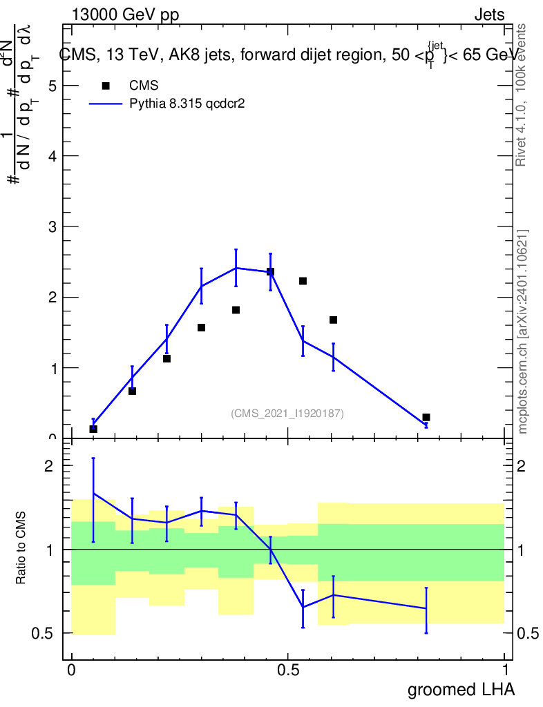 Lines: data, pythia8 8.315 qcdcr2 |
