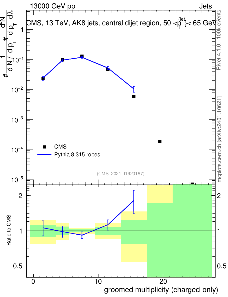Lines: data, pythia8 8.315 ropes |