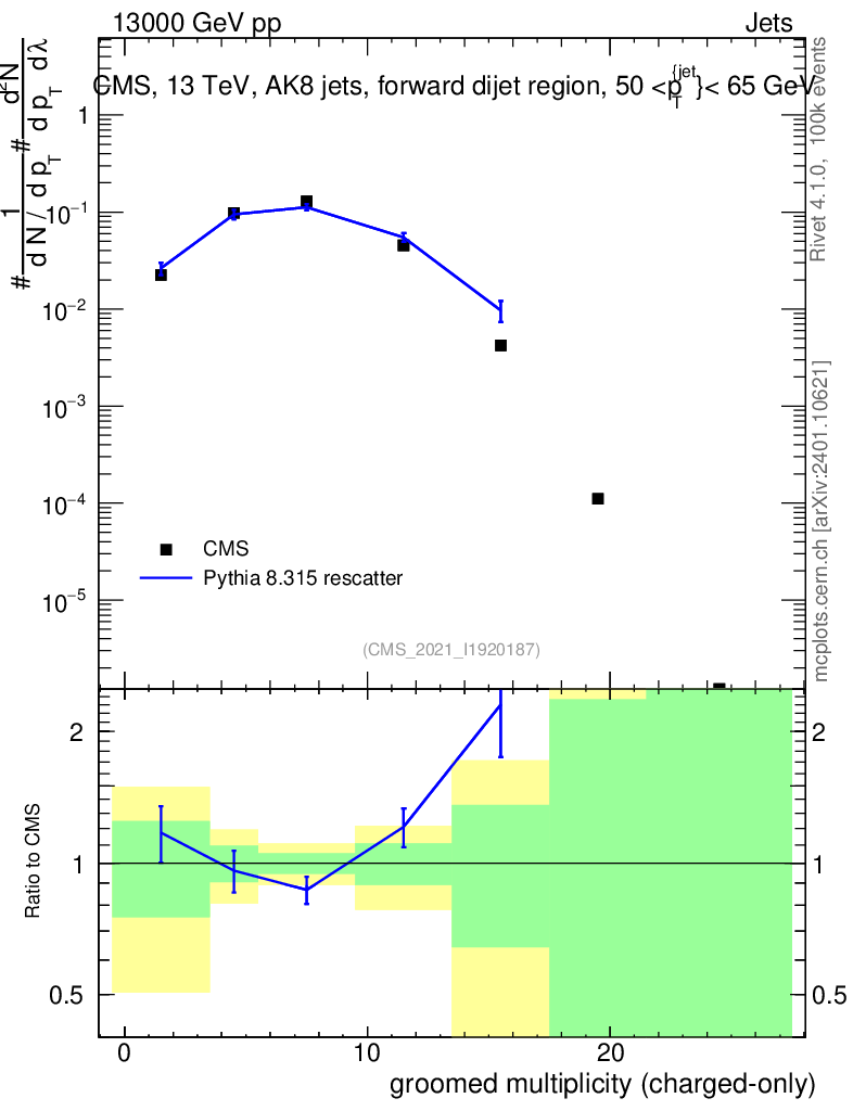 Lines: data, pythia8 8.315 rescatter |