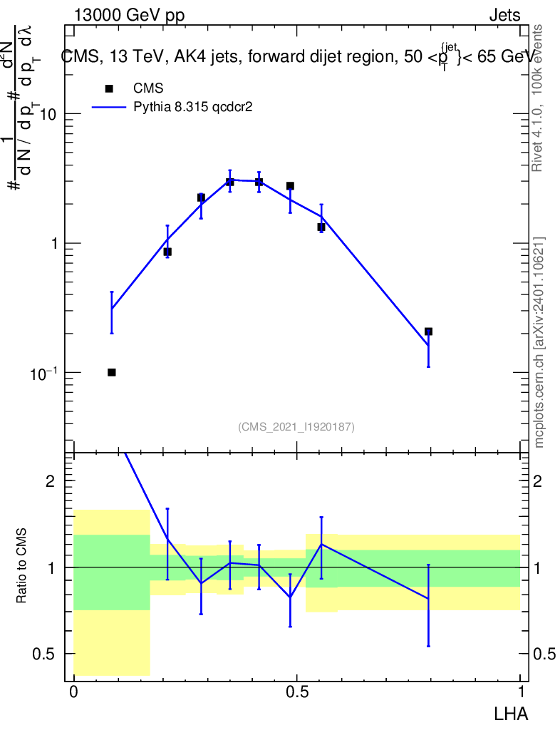 Lines: data, pythia8 8.315 qcdcr2 |