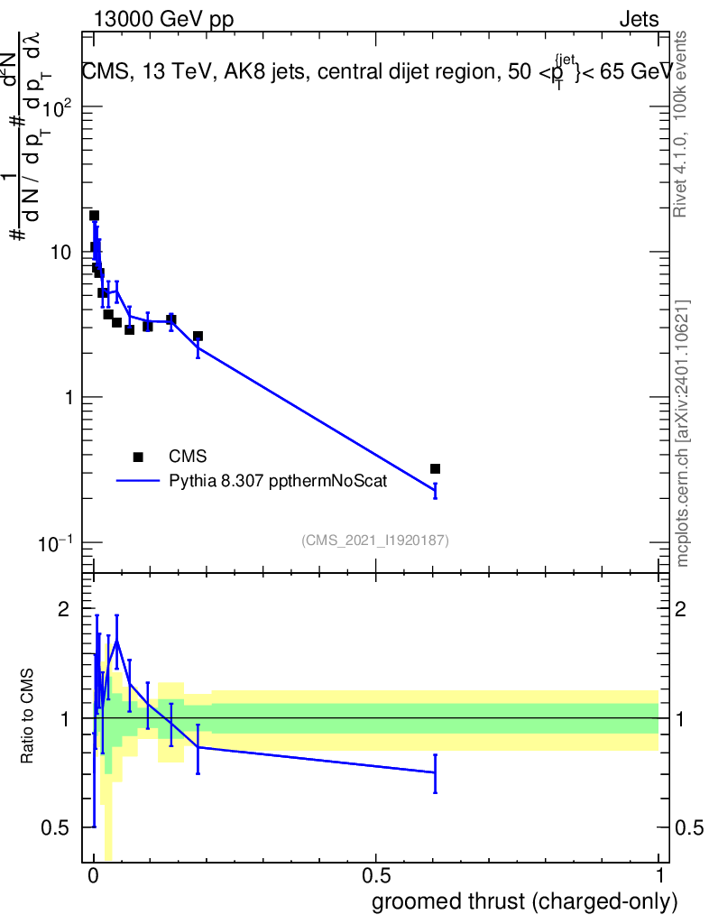 Lines: data, pythia8 8.307 ppthermNoScat |
