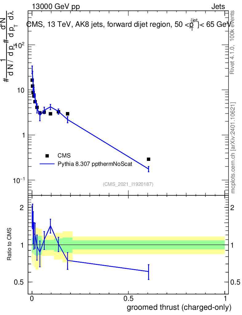 Lines: data, pythia8 8.307 ppthermNoScat |