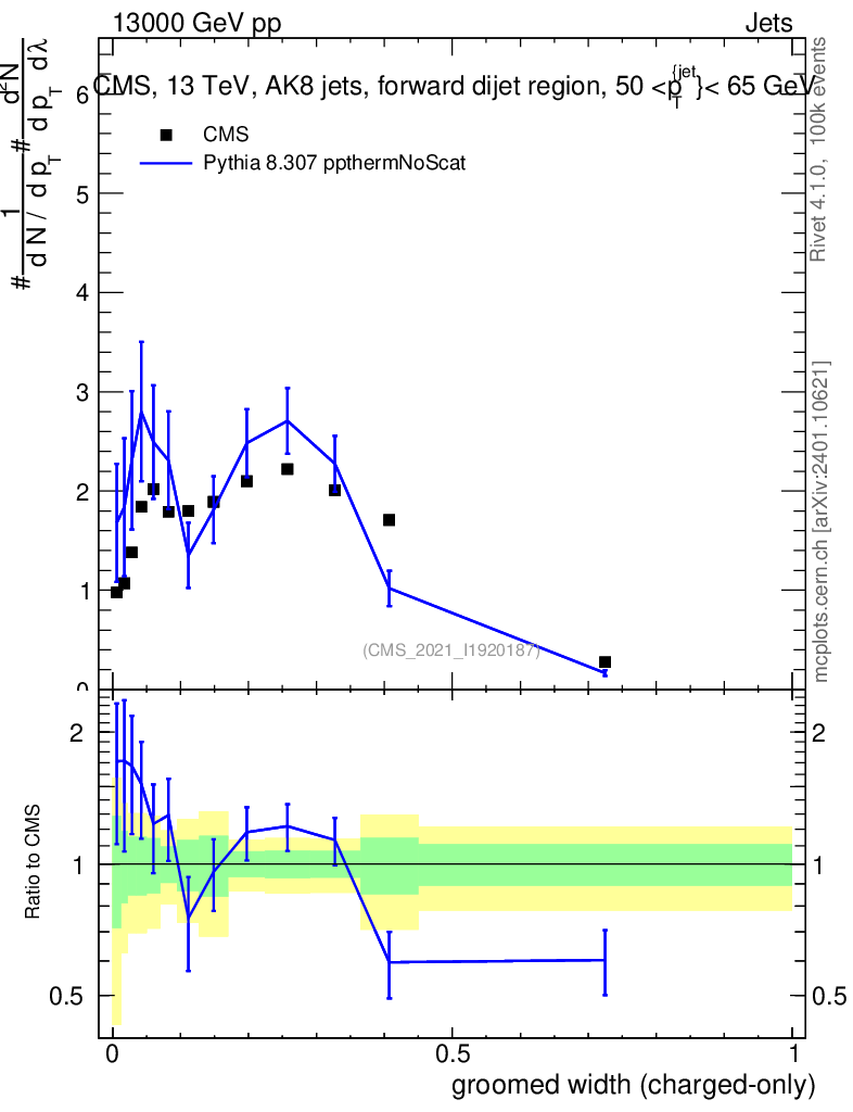 Lines: data, pythia8 8.307 ppthermNoScat |