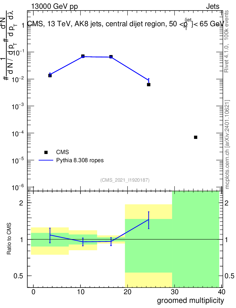 Lines: data, pythia8 8.308 ropes |