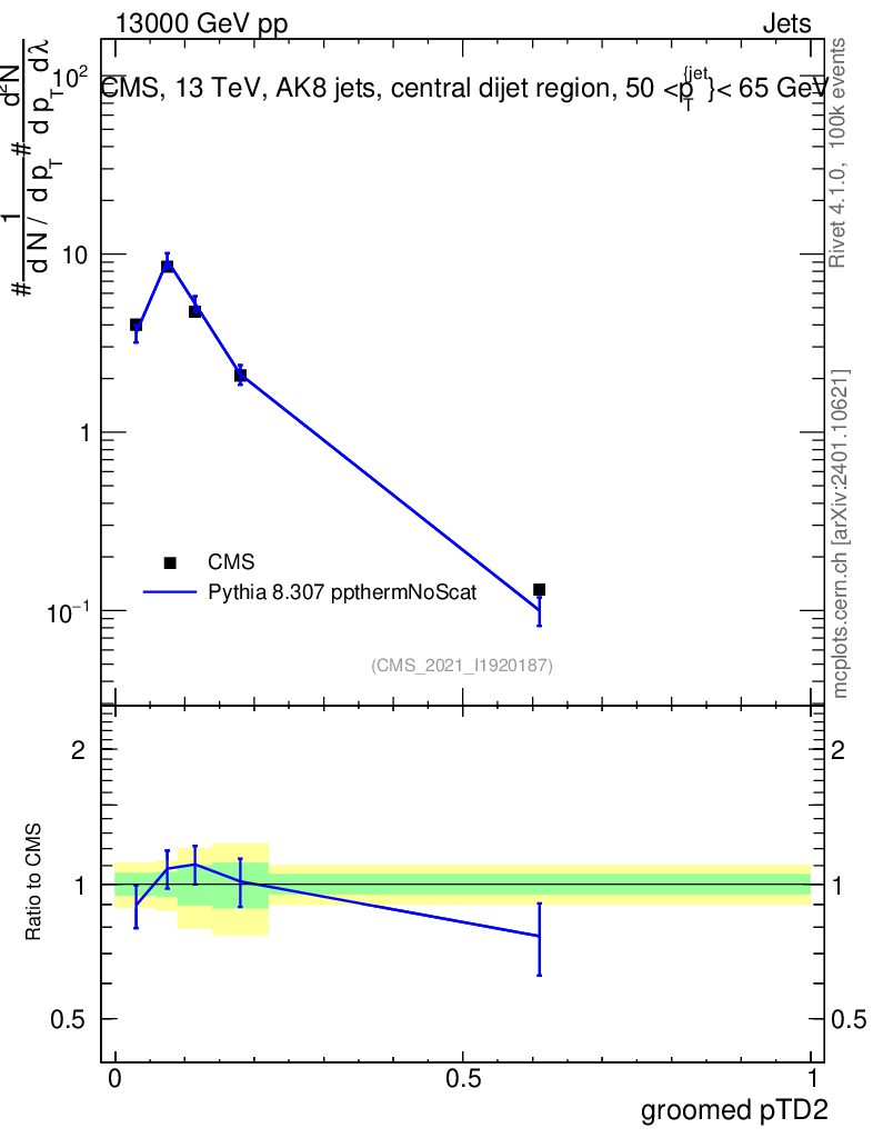 Lines: data, pythia8 8.307 ppthermNoScat |