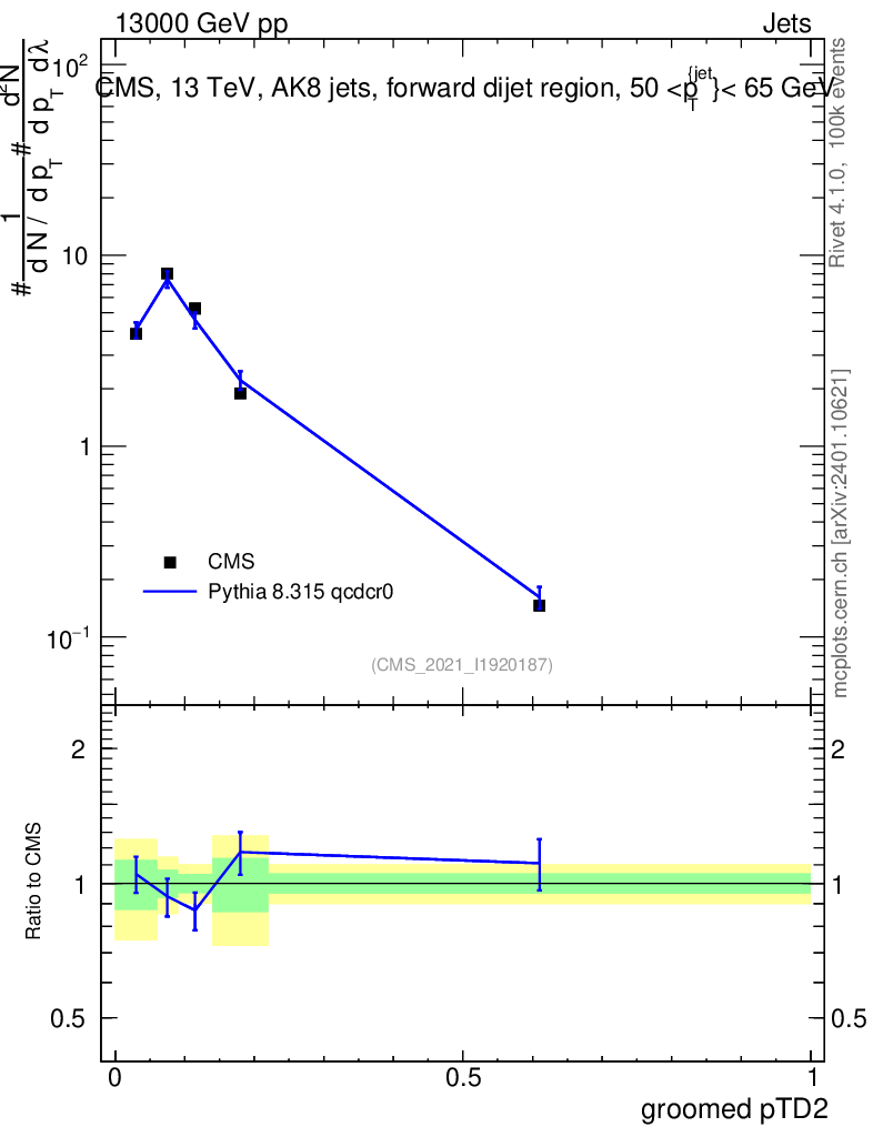 Lines: data, pythia8 8.315 qcdcr0 |