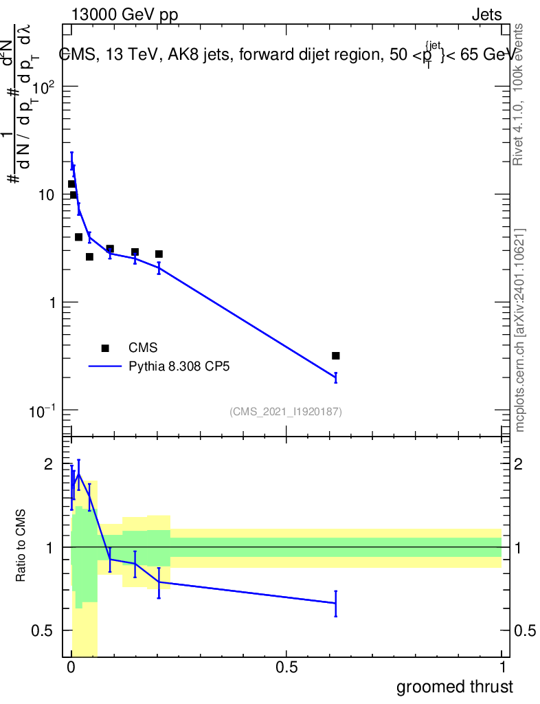 Lines: data, pythia8 8.308 CP5 |