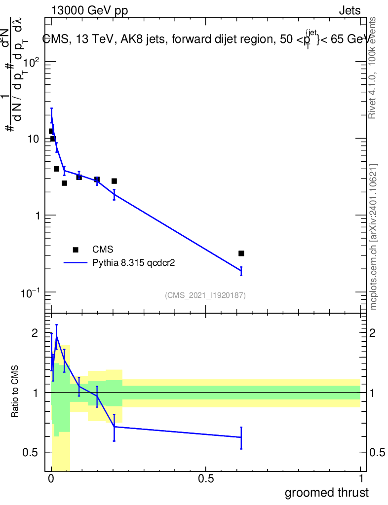 Lines: data, pythia8 8.315 qcdcr2 |