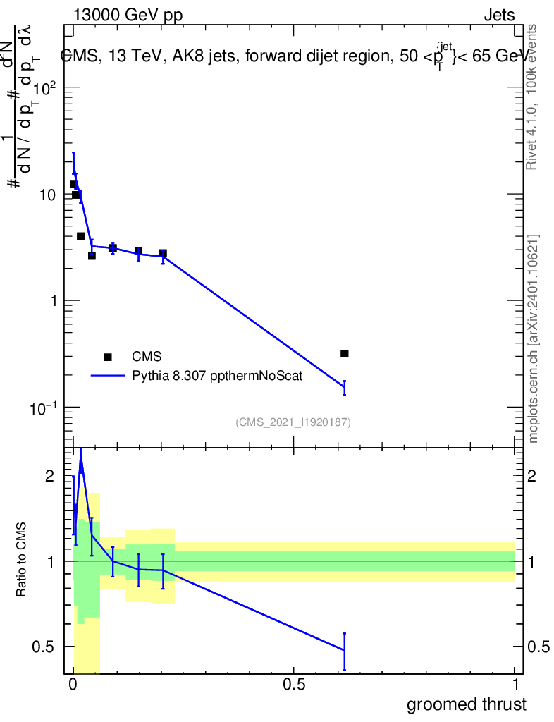 Lines: data, pythia8 8.307 ppthermNoScat |