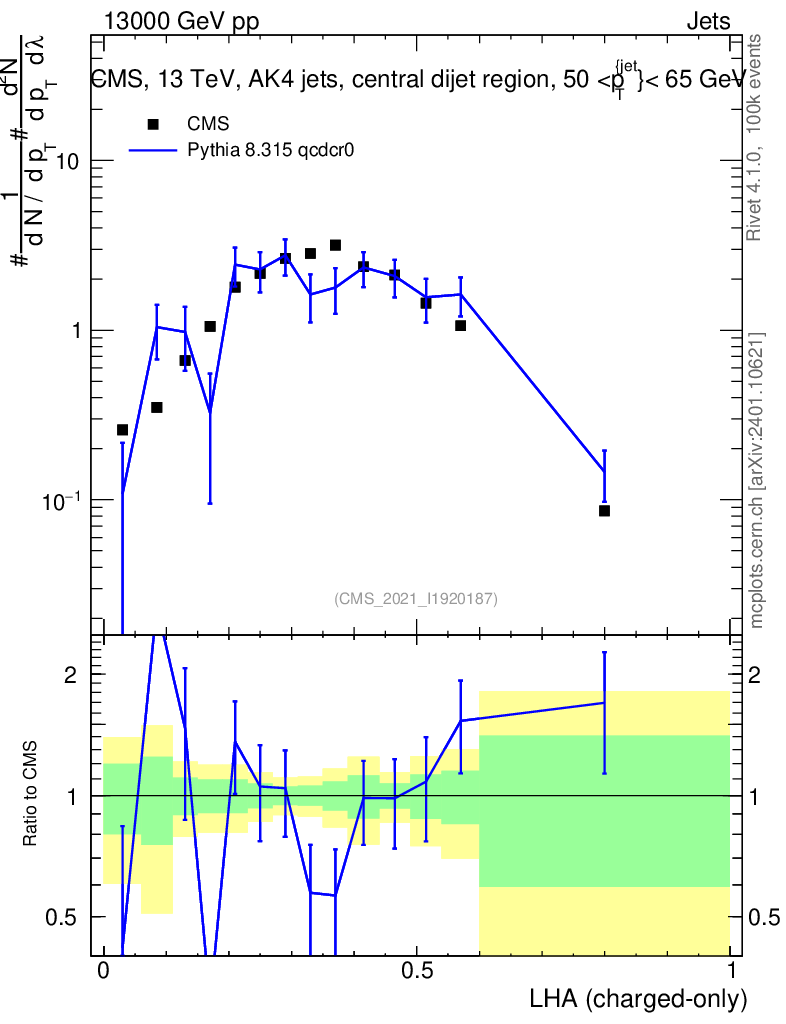 Lines: data, pythia8 8.315 qcdcr0 |