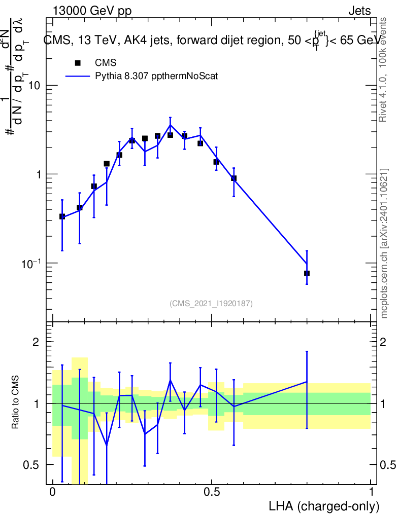 Lines: data, pythia8 8.307 ppthermNoScat |