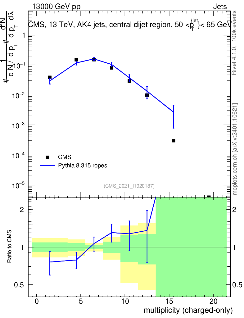 Lines: data, pythia8 8.315 ropes |