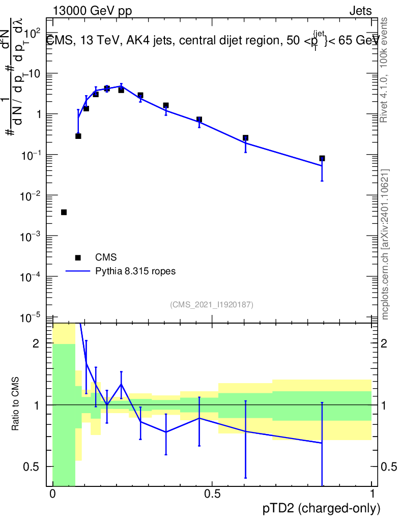 Lines: data, pythia8 8.315 ropes |