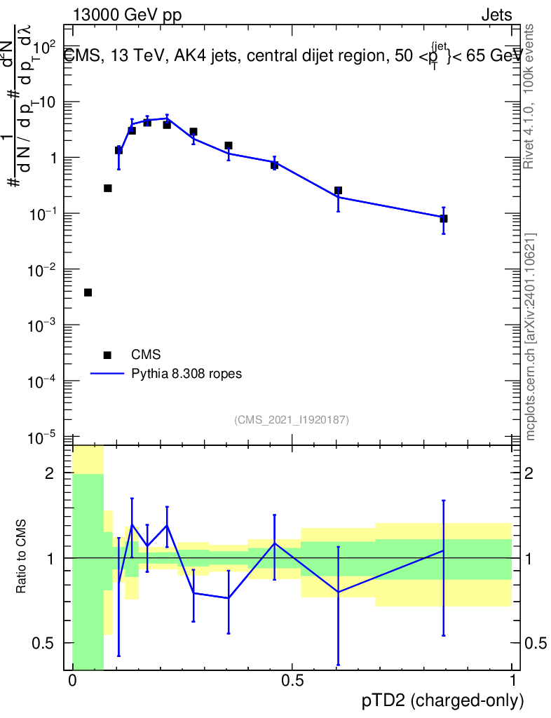 Lines: data, pythia8 8.308 ropes |