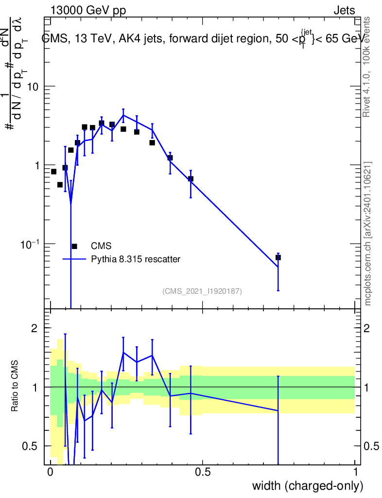Lines: data, pythia8 8.315 rescatter |