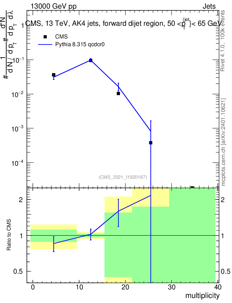 Lines: data, pythia8 8.315 qcdcr0 |