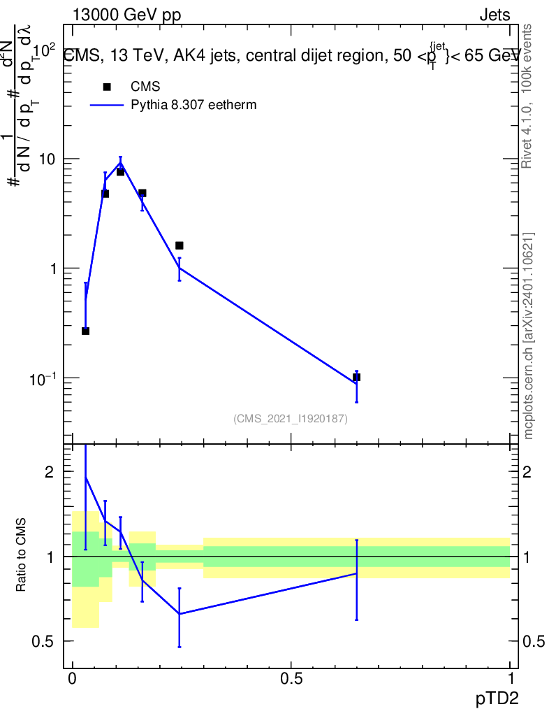 Lines: data, pythia8 8.307 eetherm |