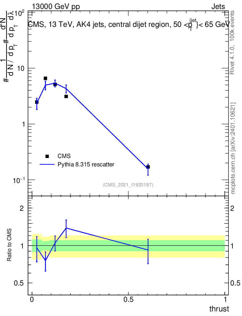 Lines: data, pythia8 8.315 rescatter |