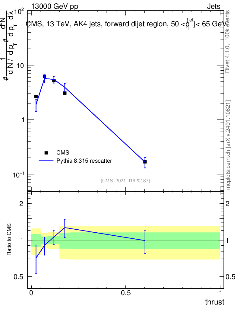 Lines: data, pythia8 8.315 rescatter |