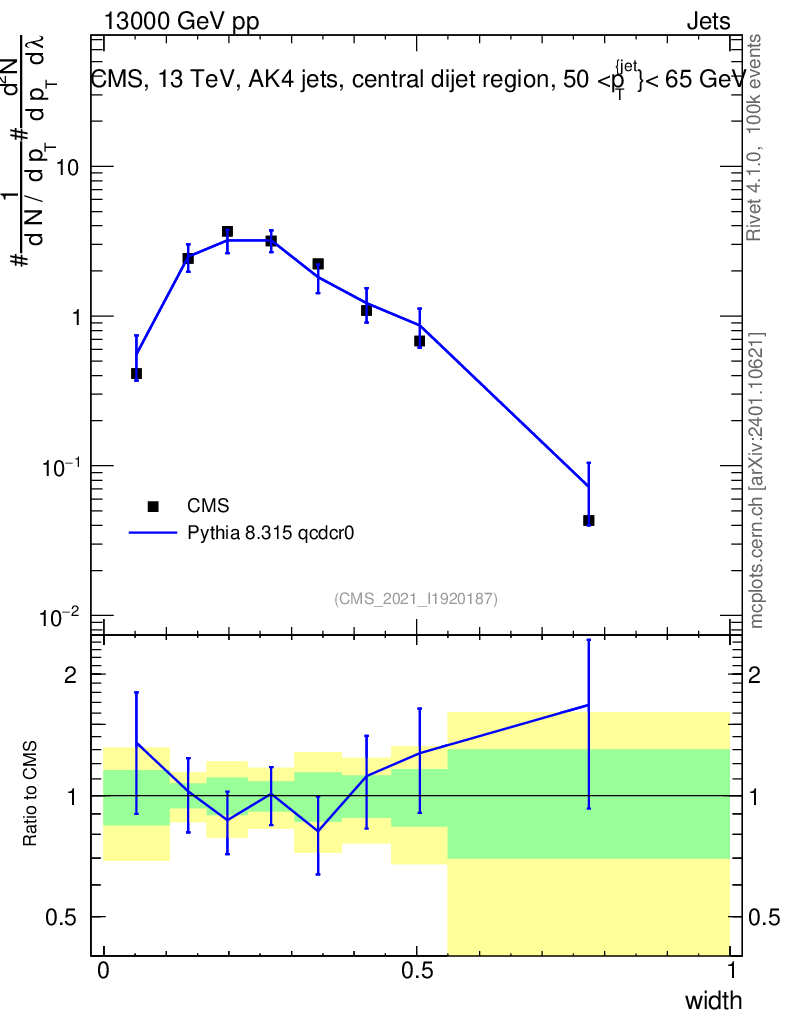 Lines: data, pythia8 8.315 qcdcr0 |