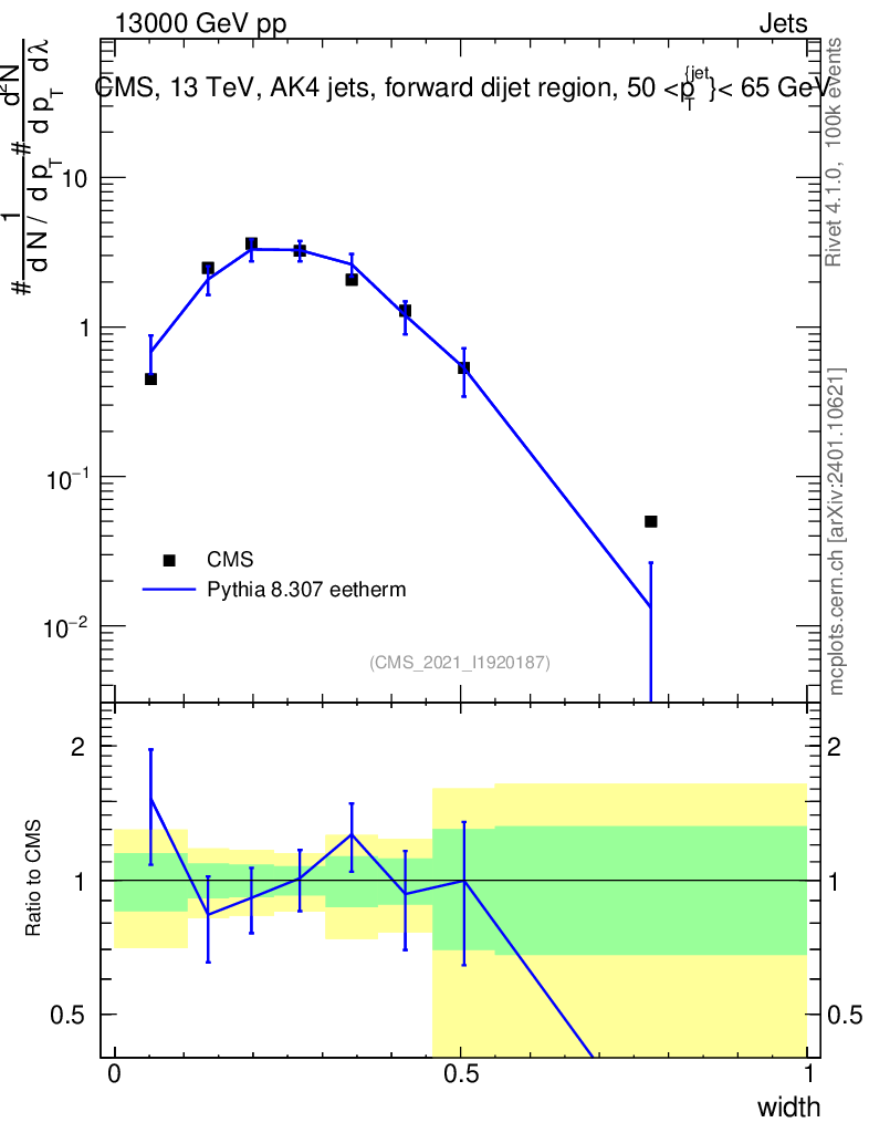 Lines: data, pythia8 8.307 eetherm |