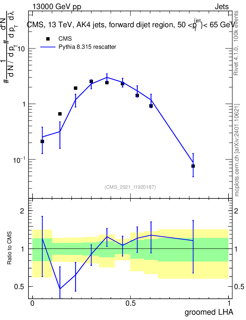 Lines: data, pythia8 8.315 rescatter |