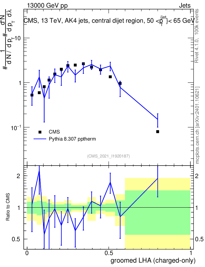 Lines: data, pythia8 8.307 pptherm |