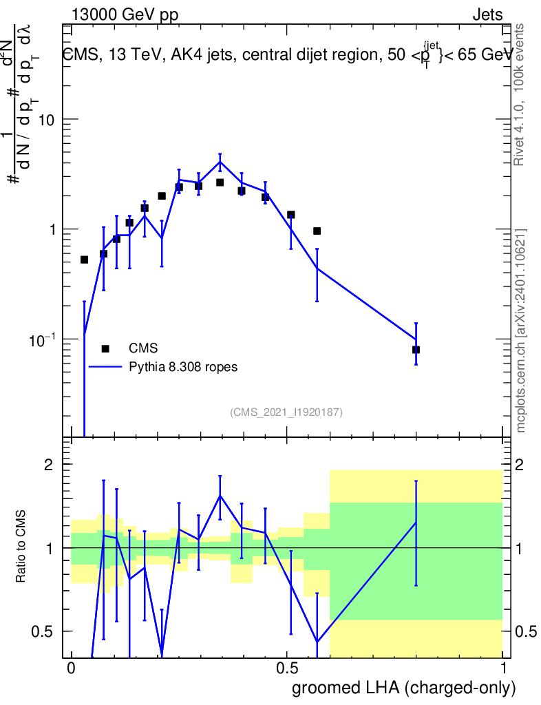 Lines: data, pythia8 8.308 ropes |
