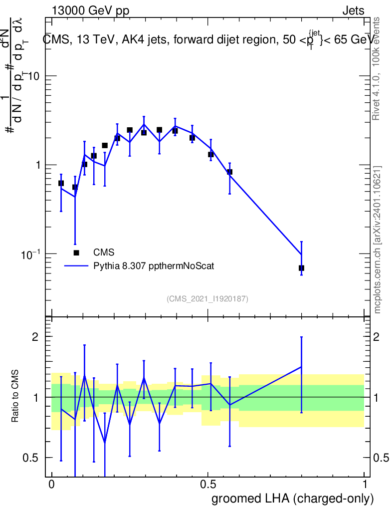 Lines: data, pythia8 8.307 ppthermNoScat |