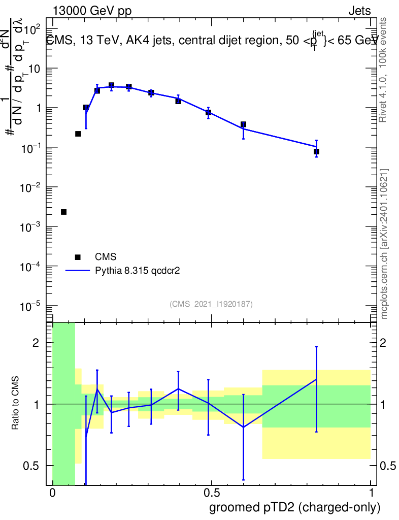 Lines: data, pythia8 8.315 qcdcr2 |
