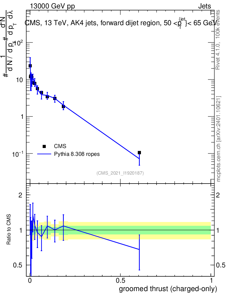 Lines: data, pythia8 8.308 ropes |