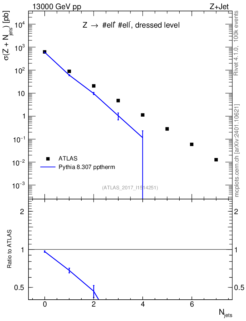 Lines: data, pythia8 8.307 pptherm |