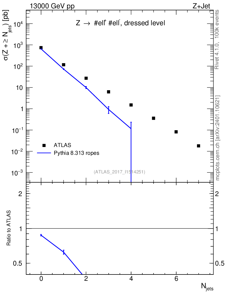 Lines: data, pythia8 8.313 ropes |