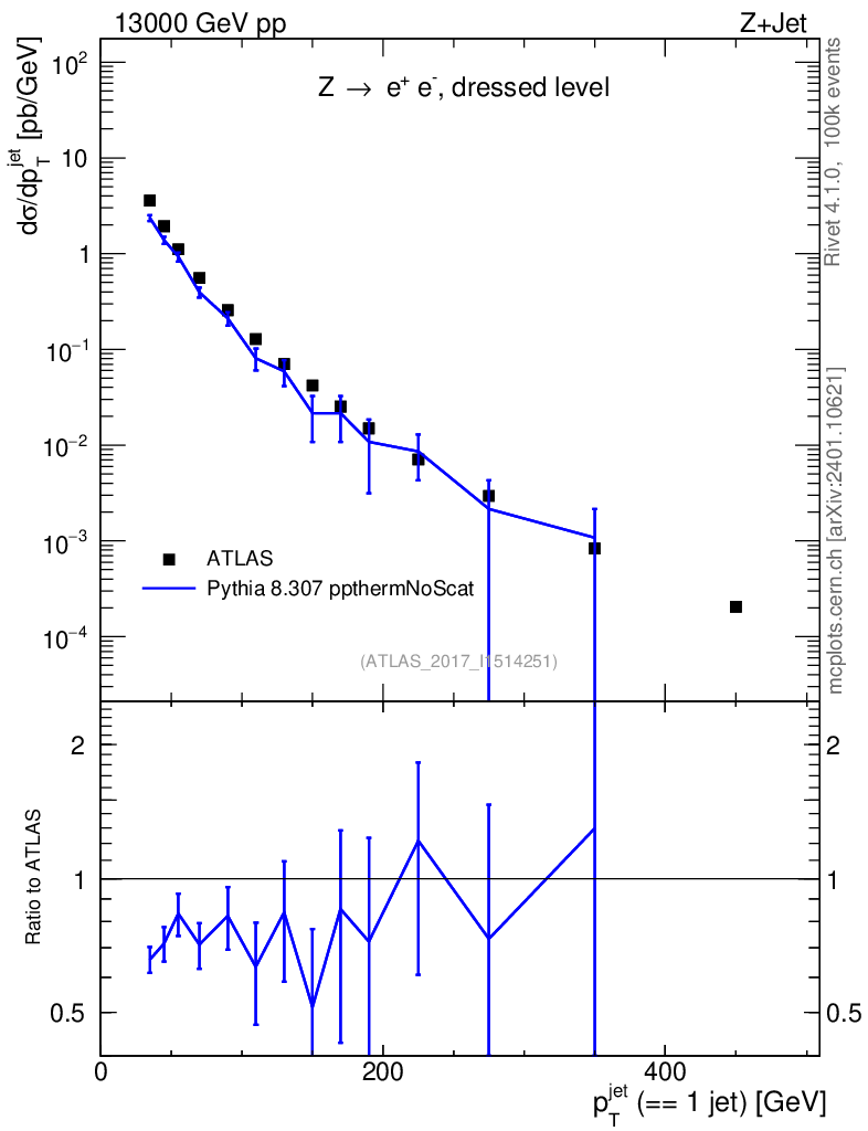 Lines: data, pythia8 8.307 ppthermNoScat |