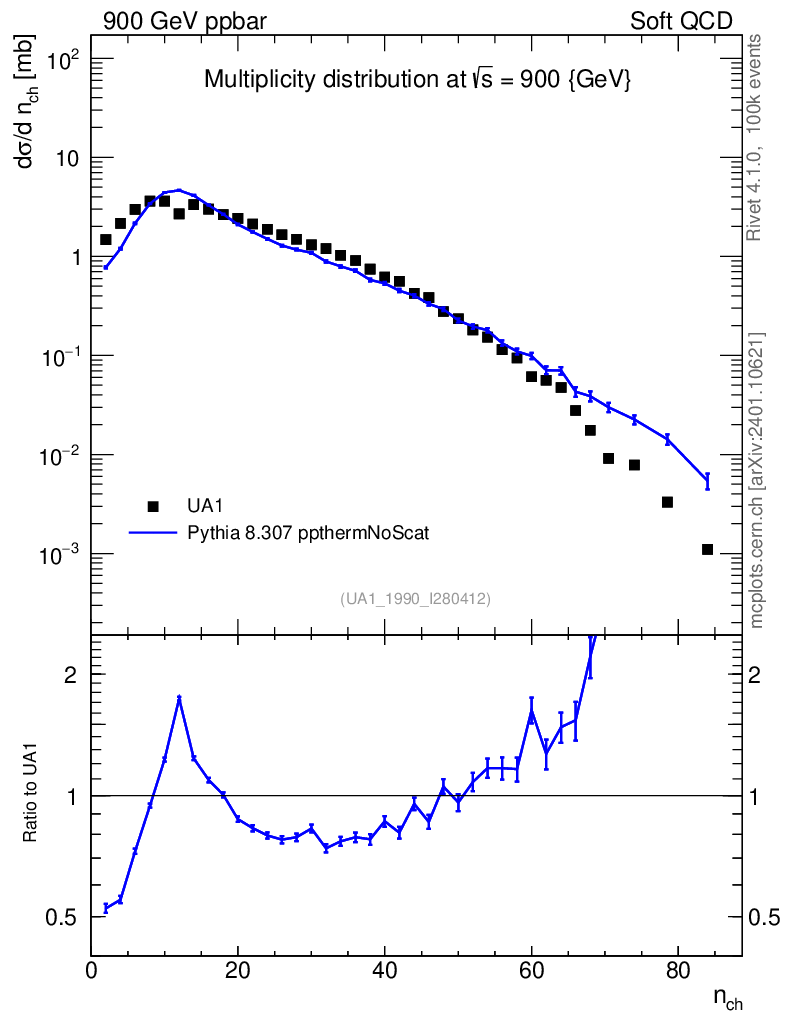 Lines: data, pythia8 8.307 ppthermNoScat |