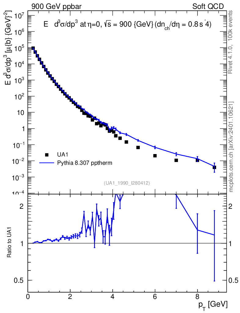 Lines: data, pythia8 8.307 pptherm |
