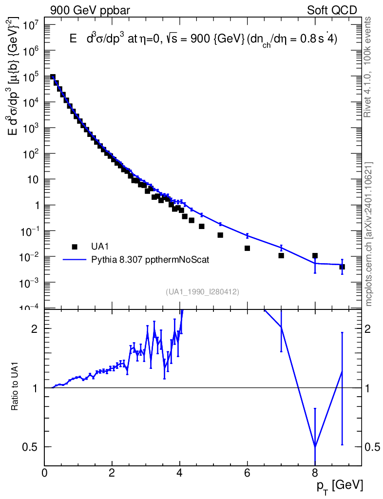 Lines: data, pythia8 8.307 ppthermNoScat |
