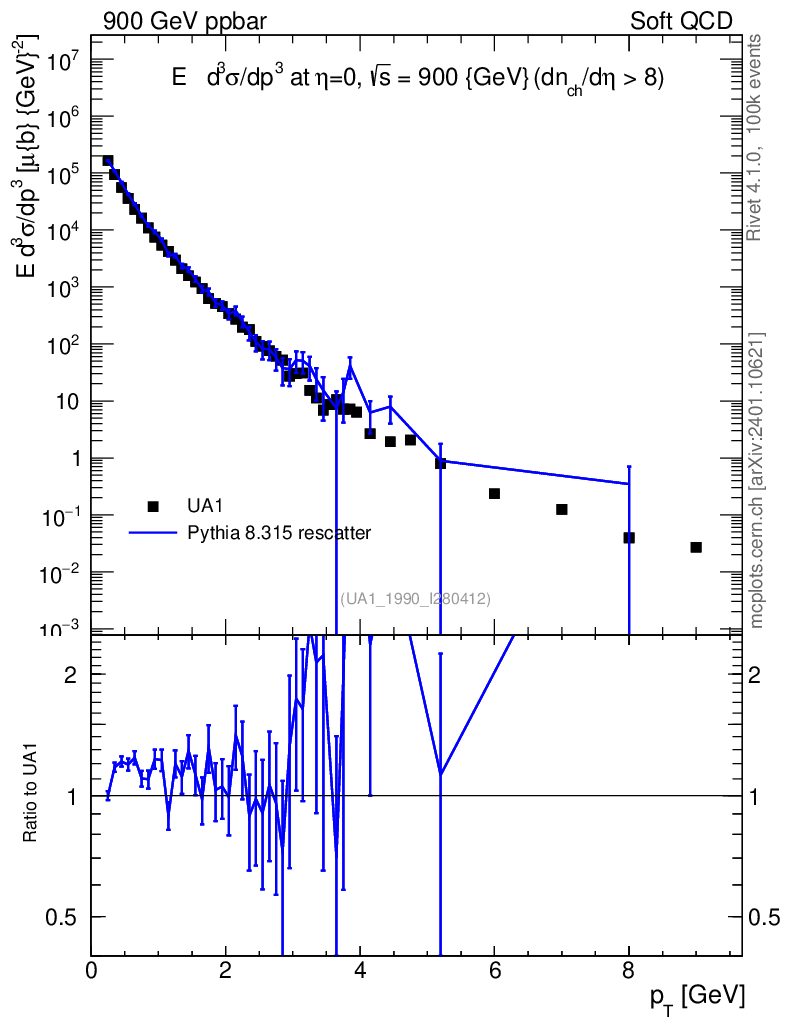 Lines: data, pythia8 8.315 rescatter |